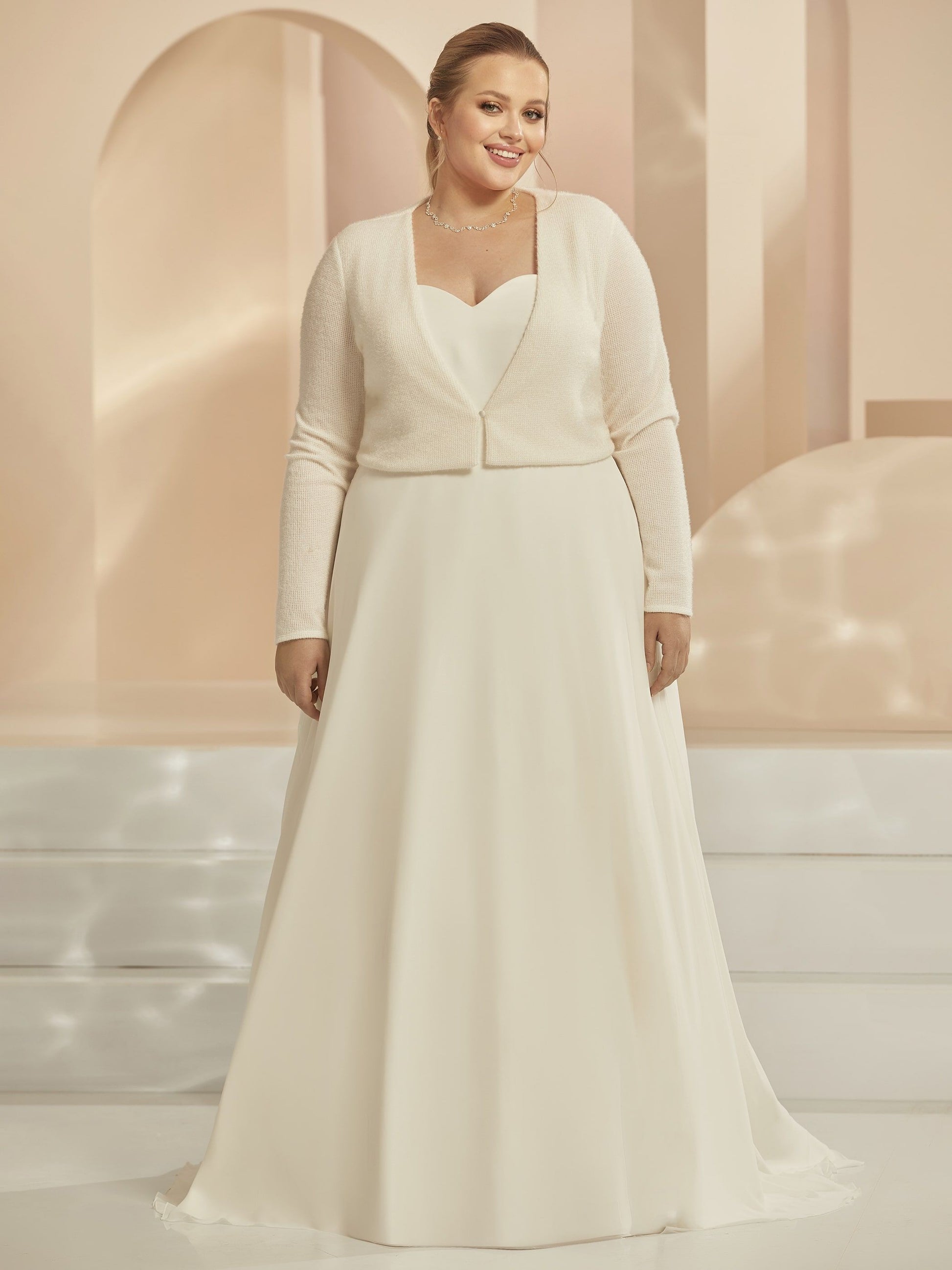 Complete your bridal outfit with the Alice angora bolero cardigan and enjoy a chic and comfortable touch on your special day.